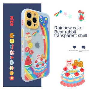 Cute Cartoon Rainbow Cake Bear Rabbit Phone Case For iPhone 12 11 Pro Max X Xs Max Xr 7 8 Puls SE 2020 Cases Soft TPU Cover